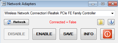 Just a little program I whipped up today. If like me, you connect to the web via LAN, but don't always like your PC to be connected all the time, especially at boot up, then you might find my script handy. Basically I use it to turn my Ethernet connection off. A fairly simple affair, and the state persists after shutdown. BIG THANKS to jguinch for the Network configuration UDF. My script uses and requires the Network.au3 include file from the first post of that topic. My script runs with Admin Rights, as per the first line of the script. Show Adapters.au3 (40 previous downloads) NOTE - On my system, some adapters have a CRLF in the middle of the returned entry. My script changes that, within program, to a backward slash (\) for ease of use etc. As can be noted in the screenshot, the second portion, after the backslash, is the actual adapter name used for ENABLE and DISABLE and getting INFO. To work with the same adapter by default, you can SAVE a selected entry as the one, which can appear selected at startup after first being checked. Enjoy!
