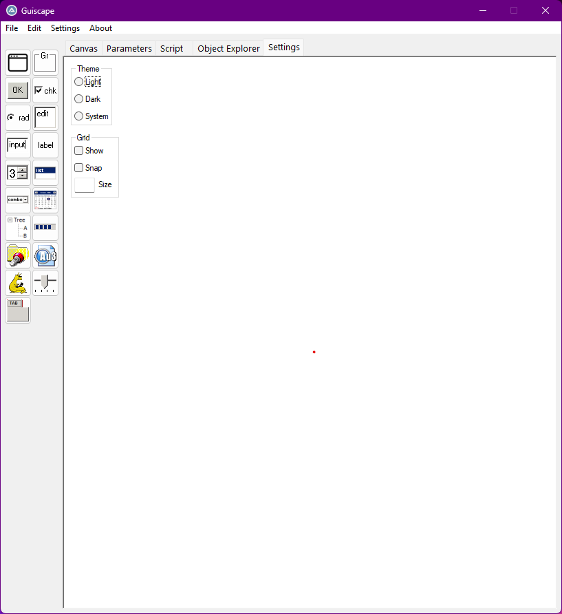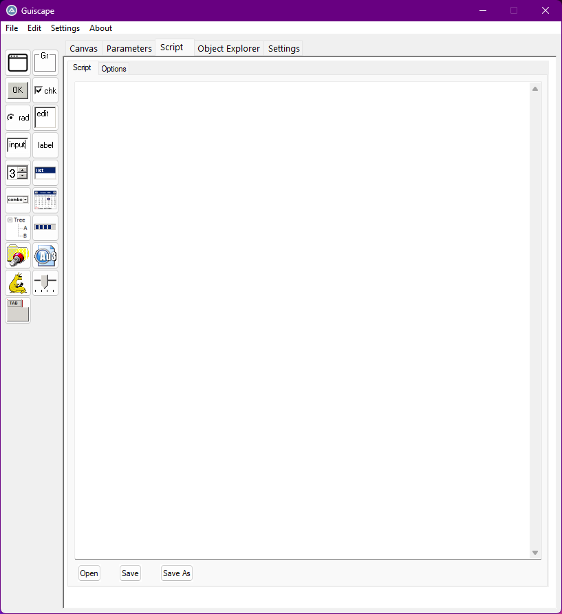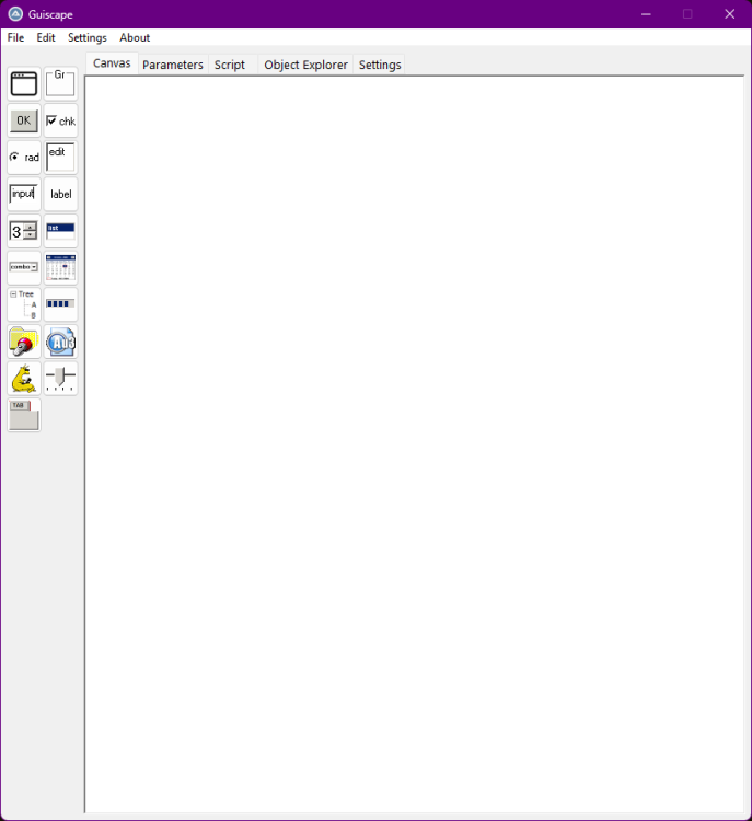Hello! I'm working on a new GUI builder that I have been making great progress on! A helpful forum member ioa747 answered a question I had which started me on my journey, and now I'd like to present to you an alpha version of the software. As of now only Form and Button works in a rudimentary fashion. To run this, open Guiscape.au3 and go from there! I'd love to hear your feedback and suggestions. 🙂 Latest versions will be on Github from now on. https://github.com/matthewrg/Guiscape/archive/refs/heads/main.zip Downloads: 877 points -