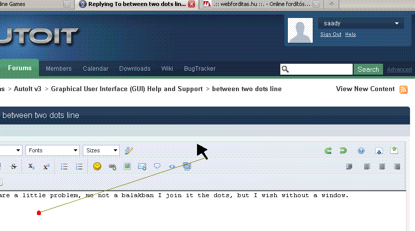 saady Posted February 1, 2010 Posted February 1, 2010 First, sorry my English. So, 2 given dots and I would like to link them to a line, for example the A point=300*220 (pix) and B point =567*870 (pix) these 2 dots would like to set. I hope so someboye be a idea for me.