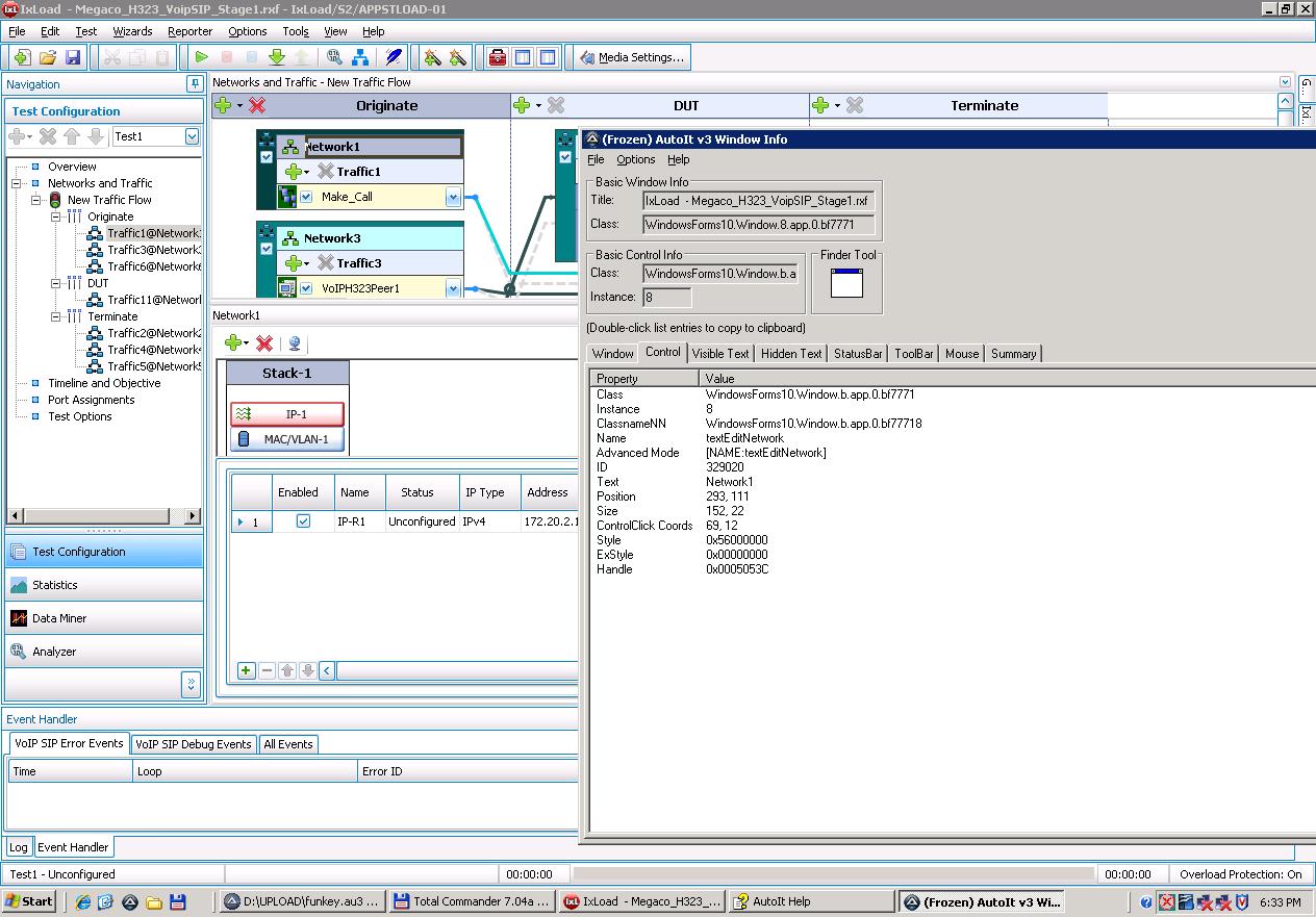 ionut Posted May 5, 2010 Author Posted May 5, 2010 Maybe this is usefull for you. Global $Array = _WinGetCtrlInfo(WinGetTitle('')) Global $sOne = '[0][0] = ' & $Array[0][0] & @CR, $sTwo For $iCC = 1 To $Array[0][0] $sOne &= '[' & $iCC & '][0] = ' & $Array[$iCC][0] & @CR $sTwo &= '[' & $iCC & '][1] = ' & $Array[$iCC][1] & @CR Next MsgBox(64, 'WinInfo', StringTrimRight($sOne, 1) & @CR & StringTrimRight($sTwo, 1)) Func _WinGetCtrlInfo($hWin) If IsString($hWin) Then $hWin = WinGetHandle($hWin) Local $sClassList = WinGetClassList($hWin), $iAdd = 1, $aDLL, $sHold Local $aSplitClass = StringSplit(StringTrimRight($sClassList, 1), @LF), $aReturn[1][2] For $iCount = $aSplitClass[0] To 1 Step - 1 Local $nCount = 0 While 1 $nCount += 1 If ControlGetHandle($hWin, '', $aSplitClass[$iCount] & $nCount) = '' Then ExitLoop If Not StringInStr(Chr(1) & $sHold, Chr(1) & $aSplitClass[$iCount] & $nCount & Chr(1)) Then $sHold &= $aSplitClass[$iCount] & $nCount & Chr(1) $iAdd += 1 ReDim $aReturn[$iAdd][2] $aReturn[$iAdd - 1][0] = $aSplitClass[$iCount] & $nCount $aDLL = DllCall('User32.dll', 'int', 'GetDlgCtrlID', 'hwnd', _ ControlGetHandle($hWin, '', $aSplitClass[$iCount] & $nCount)) If @error = 0 Then $aReturn[$iAdd - 1][1] = $aDLL[0] Else $aReturn[$iAdd - 1][1] = '' EndIf EndIf WEnd Next $aReturn[0][0] = $iAdd - 1 Return $aReturn EndFunc Hi, I've tried this script on AutoIT and Notepad and it works nicely. But it does not scale for my application, where there are a lot of classes used(334). Here's the first lines of the output to console: WinInfo[0][0] = 334 [1][0] = IXVDummyWindow1 [2][0] = WindowsForms10.window.8.app.0.bf77711 [3][0] = WindowsForms10.window.8.app.0.bf77712 [4][0] = WindowsForms10.window.8.app.0.bf77713 [5][0] = WindowsForms10.window.8.app.0.bf77714 [6][0] = WindowsForms10.window.8.app.0.bf77715 [7][0] = WindowsForms10.window.8.app.0.bf77716 [8][0] = WindowsForms10.window.8.app.0.bf77717 [9][0] = WindowsForms10.window.8.app.0.bf77718 which I am not sure how to use. I've attached a snapshot of my application. What I'm trying to find out is the position of Controls Network1, Network3,etc. Thanks for your help, Ionut