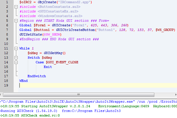 Steward Posted February 10, 2011 Posted February 10, 2011 I need help setting up a first button's code by some of you much more experienced since I believe AutoIt is a better fit than Visual Basic. I want to make sure I don't overlook any technicalities or get in any deeper if I can't make any of your suggestions work reliably enough. I did go through the help file Forbidden403's 14 tutorials & Andy Flesner's 2007 book but there is very little covering of the subtleties of connecting AutoIt with another software's COM objects. Somebody told me that the created AutoIt program would have to be registered in Windows 7 to work with the COM objects for one thing. The AutoIt Button1 when clicked must automatically click the created Button in IRCOMMAND2. That is the objective of the the proposed AutoIt program in its simplest form. I notice in the ObjectViewer in VB6 Pro the COM registered referenced library shows as Global Class IRC2Application Member of IRCOMMAND2 In that same VB6 Pro ObjectViewer it then shows Function ClickButton(Device As String, BtnPath As String) As Boolean Member of IRCommand2.IRC2Application. Here are a couple of links that tells the it is supposed to be extra simple with any scripting program. http://www.wdpsoftware.com/IRC2/tn_appnote_userapps.htm http://www.wdpsoftware.com/downloads/IRC2_COM_Automation.pdf Attached is the beginning of my code --- I can't help but think that I am overlooking some considerations. Based on my information hopefully I can run some tests on some suggested specific AutoIt code. Mike