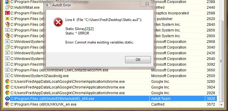 FredAI Posted April 3, 2012 Author Posted April 3, 2012 (edited) Nope, it's not fixed yet. Not only does the beta generate the same error, but the Open script button in the example scripts in the help file doesn't work either. So much for static vars in autoit. Edited April 3, 2012 by FredAI My UDFs: SetAcl permissions | System restore Examples: File version info editor | GetIp() improved Programs: UVK - Ultra virus killer | ExeFixer | Recent file seeker | SHIcon | Quick_Any2Ico