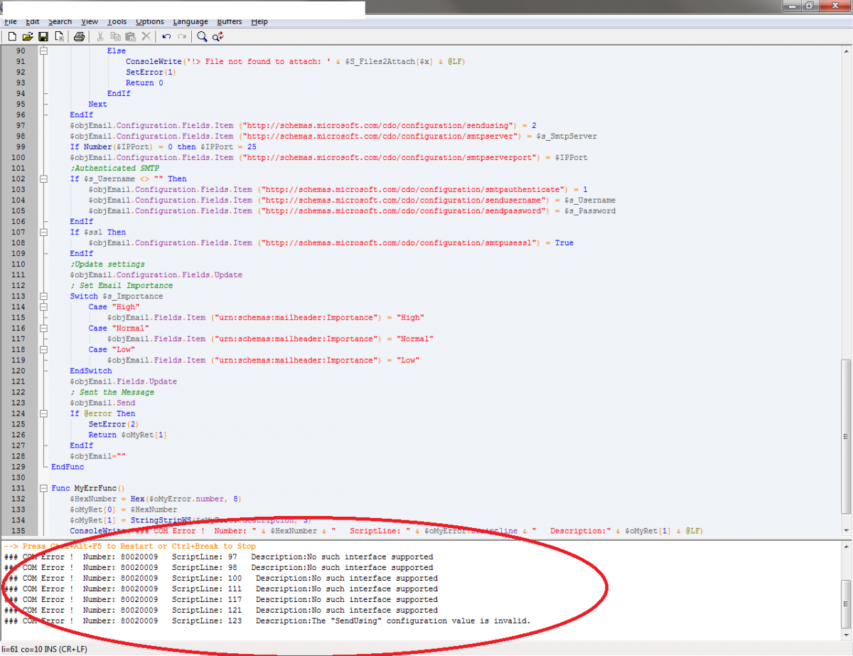 water Posted June 19, 2012 Posted June 19, 2012 Looks like you use This UDF uses CDO which is - IIRC - no longer part of Windows 7. Check this article which describes the problem and leads you to the download site for CDO. My UDFs and Tutorials: Spoiler UDFs: Active Directory (NEW 2024-07-28 - Version 1.6.3.0) - Download - General Help & Support - Example Scripts - Wiki ExcelChart (2017-07-21 - Version 0.4.0.1) - Download - General Help & Support - Example Scripts OutlookEX (2021-11-16 - Version 1.7.0.0) - Download - General Help & Support - Example Scripts - Wiki OutlookEX_GUI (2021-04-13 - Version 1.4.0.0) - Download Outlook Tools (2019-07-22 - Version 0.6.0.0) - Download - General Help & Support - Wiki PowerPoint (2021-08-31 - Version 1.5.0.0) - Download - General Help & Support - Example Scripts - Wiki Task Scheduler (2022-07-28 - Version 1.6.0.1) - Download - General Help & Support - Wiki Standard UDFs: Excel - Example Scripts - Wiki Word - Wiki Tutorials: ADO - Wiki WebDriver - Wiki