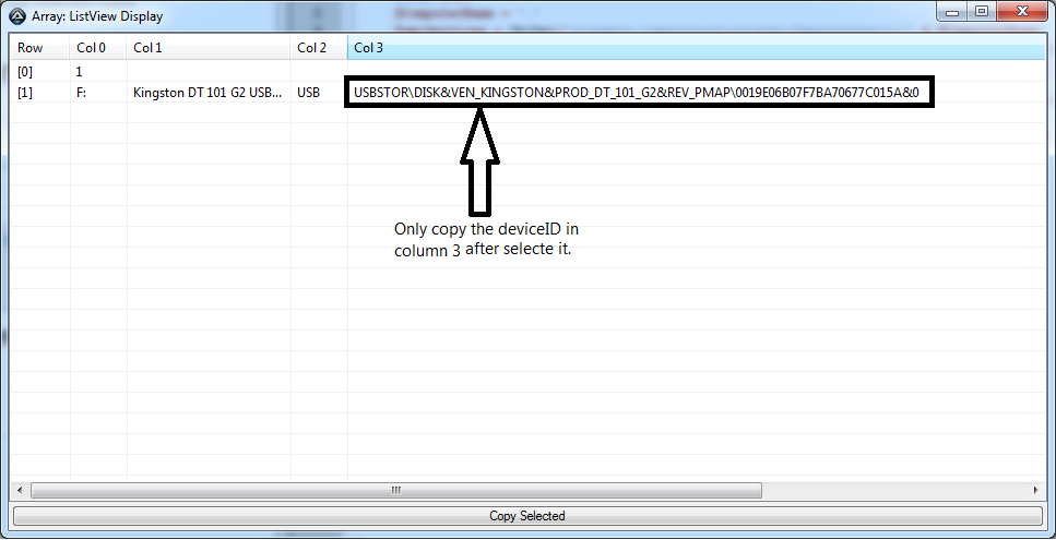 LyndaSing7 Posted December 13, 2013 Author Posted December 13, 2013 yes, I do know the code able to display the USB ,kylomas. but I just want to copy the USB ID part of the text but do not want to copy the USB name and the others column ,just want the copy and select the col 3 . (sorry for my bad english)