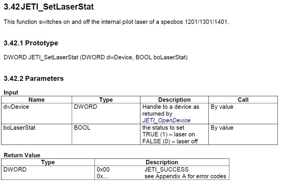 hyperjase Posted January 6, 2015 Posted January 6, 2015 Hi, This is my first time attempting to access a DLL file via AutoIT, but I just keep crashing the script editor (presumably because I'm doing something wrong...) My code is- $fOpen = DllOpen ("jeti_core.dll") If $fOpen = -1 Then MsgBox(0,"Warning!","DLL File Not Found") Else DllCall($fOpen,"DWORD",1,"DWORD",0) $sTest = DllCall($fOpen,"DWORD",13,"hwnd",1) MsgBox(0,"",$sTest) EndIf DllClose("jeti_core.dll") Now I'm confident it doesn't work as I have no idea that it is correct, I've had a good search and checked the manual, but from what I see, I'm just not sure how to achieve this. What I'm trying to achieve above it to turn a laser light on in a light calibration unit, which can be accessed through Ordinal #13 (#1 should open the first device). I've attached the part of the manual that relates to this part. Can anyone give me a gentle push in the right direction? Many thanks