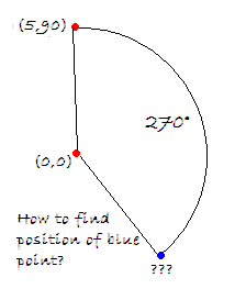 algiuxas Posted September 14, 2015 Author Posted September 14, 2015 The angle in the picture doesn't ressemble anyway a 270° angle (a 3/4 of full rotation). If it really is 270°, no computation is needed: the blue point will be at (-90, 5).Thanks, but it's just an example, I need to know how to calculate it, becouse arc degree will change in my program. After switching years ago to Linux, sadly I don't use AutoIt anymore.