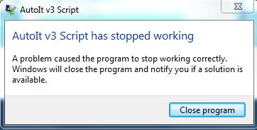 Lights_On Posted January 23, 2016 Posted January 23, 2016 Hi All, I have an issue with AutoIT3 crashing at the end of my script - all works fine when debugging however. Allow me to add a little further detail. I am running V3.3.14.2 on W7 x84. My script predominately works with Excel files and is in the region of 3000 lines. I have a custom debug set up (sounds better than it is - it just writes errors to a log) and I have tracked the script and now I can say there are no errors that I know of. If I run the scrip all runs until the very end where it crashes - attached is the message thrown. The odd part is, that if I add trace lines from the tools menu to try and debug further, and watch the script run while it out puts info, the issue disappears (does not happen) - the scrip runs smoothly from start to finish as one would expect / as was intended. So - is my issue my script - or AutoIT / windows? Thank you in advance for any help you may be able to offer.