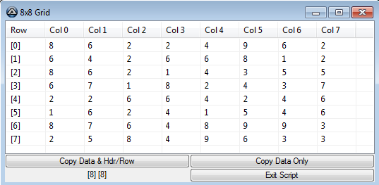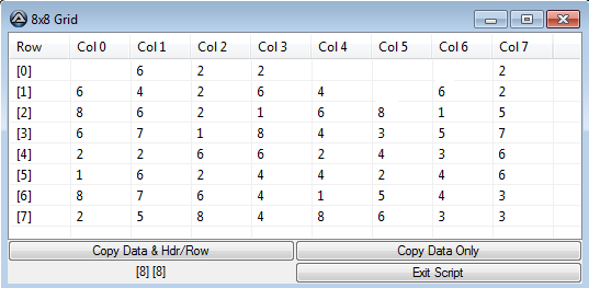 ferradavi Posted February 21, 2016 Author Posted February 21, 2016 (edited) I modified the list in a 2d array, 8x8 grid and I defined the target number between 11 and 50. expandcollapse popup#include <Array.au3> #include <MsgBoxConstants.au3> Local $iMaxPossible = 0 ;Create random 64 elements and calculate the max possible value Global $aFactors[8][8] For $i = 0 To 7 For $ii = 0 To 7 $aFactors[$i][$ii] = Random(1, 9, 1) $iMaxPossible += $aFactors[$i][$ii] Next Next ; Determine required number $iRequired = Random(11,50,1) ConsoleWrite("Required: " & $iRequired & @CRLF) Global $aFactorCount[10] For $i = 0 To 7 For $ii = 0 To 7 $aFactorCount[$aFactors[$ii][$i]] += 1 Next Next ; Declare variables Local $iTotal = 0, $iRemainder = $iRequired, $sFactors = "" ; Starting with the highest element For $iFactorValue = 9 To 1 Step -1 ; How many can be used to reach the required value $iFactorReq = Int($iRemainder / $iFactorValue) ; if there are not enough, then only use the available number If $iFactorReq > $aFactorCount[$iFactorValue] Then $iFactorReq = $aFactorCount[$iFactorValue] EndIf ; Adjust values for next pass and create result string For $j = 1 To $iFactorReq $iTotal += $iFactorValue $iRemainder -= $iFactorValue $sFactors &= $iFactorValue & "+" Next ; if required total reached then stop If $iTotal = $iRequired Then ExitLoop EndIf Next _ArrayDisplay($aFactors,"8x8 Grid") ;_ArrayDisplay($aFactorCount, "", Default, 8) If $iTotal = $iRequired Then ConsoleWrite(StringTrimRight($sFactors, 1) & "=" & $iRequired & @CRLF) MsgBox(0,"Solution",StringTrimRight($sFactors, 1)& "=" & $iRequired) Else ConsoleWrite("Unable to factor " & $iRequired & @CRLF) MsgBox(0,"No Solution","Unable to factor") EndIf I'd like to update the 2D array when the target is reached: i.e. assuming that: the starting grid (2d array), randomly generated, is the first file I attached below (8x8 grid original.bmp), and the target number is 44 the result is: 9+9+9+9+8 = 44 How can I get (re-write) the 2D array I attached as second image (8x8 grid update.bmp) where the remaining elements are slid down in the column (not only deleted). Then, I'd like to re-start the script using a loop, drawing another random target number and so on till the end: a funny and simple auto-solving mathematical game. Thank you! 8x8 grid original.bmp 8x8 grid update.bmp Edited February 22, 2016 by ferradavi