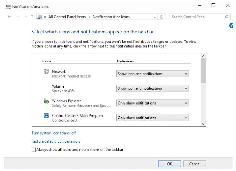 Epulone Posted January 13, 2018 Author Posted January 13, 2018 I was speaking in general to know the way to manage the drop dow menu . One example could be " which icons and notification appear on the taskbar". On the right hand side there is a drop down menu. I would like to select one of this options....