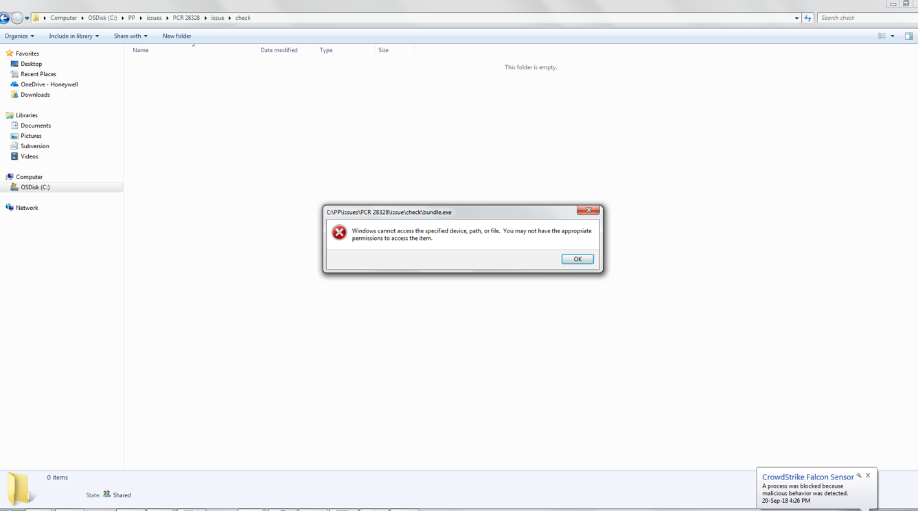 BrewManNH Posted September 20, 2018 Posted September 20, 2018 Disable your anti-virus and try running it. CrowdStrike Falcon appears to be an AV product. If I posted any code, assume that code was written using the latest release version unless stated otherwise. Also, if it doesn't work on XP I can't help with that because I don't have access to XP, and I'm not going to.Give a programmer the correct code and he can do his work for a day. Teach a programmer to debug and he can do his work for a lifetime - by Chirag GudeHow to ask questions the smart way! I hereby grant any person the right to use any code I post, that I am the original author of, on the autoitscript.com forums, unless I've specifically stated otherwise in the code or the thread post. If you do use my code all I ask, as a courtesy, is to make note of where you got it from. Back up and restore Windows user files _Array.au3 - Modified array functions that include support for 2D arrays. - ColorChooser - An add-on for SciTE that pops up a color dialog so you can select and paste a color code into a script. - Customizable Splashscreen GUI w/Progress Bar - Create a custom "splash screen" GUI with a progress bar and custom label. - _FileGetProperty - Retrieve the properties of a file - SciTE Toolbar - A toolbar demo for use with the SciTE editor - GUIRegisterMsg demo - Demo script to show how to use the Windows messages to interact with controls and your GUI. - Latin Square password generator