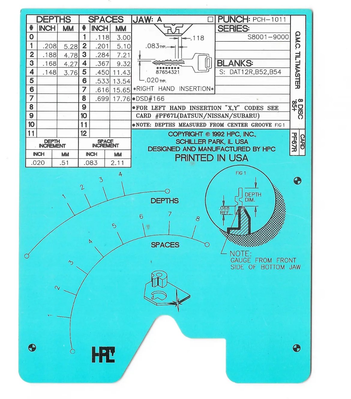 techguy86 Posted December 26, 2023 Author Posted December 26, 2023 (edited) Depths 0-11 measured in inches and mm Spaces 1-12 measured in inches and mm I want to have the ability to filter by Punch Series, etc, basically any field. So if you have a depth of 1mm, show all records with a depth of 1mm in any space. etc. Also, filter by insertion direction...also, filter by number of spaces. Not every record will use 12 spaces and not every record will use 11 depths. there maybe hundreds of depths. 104 records minimum Sorry for the delay. Edited December 26, 2023 by techguy86 Records update My Programs:Dissolve (Updated 5-30-06)Credit Card Validator (Not created as of yet)Master Lock Combination Cracker (Updated 7-08-07)Go Site-Seeing:My Website: - Click Here