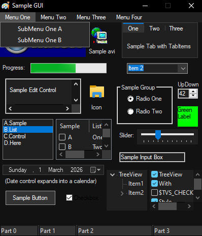 Nine Posted 12 hours ago Posted 12 hours ago (edited) Confirming that the AutoIt icon is working correctly on my side (also Win11 25H2). Also found a small bug. 1- click on Menu One (leave it opened) 2- click on calendar drop down (leave it opened) 3- click on any other control Border of the calendar is only partially erased ps. got also white Menu One Edited 12 hours ago by Nine WildByDesign 1 “They did not know it was impossible, so they did it” ― Mark Twain Spoiler Block all input without UAC Save/Retrieve Images to/from Text Monitor Management (VCP commands) Tool to search in text (au3) files Date Range Picker Virtual Desktop Manager Sudoku Game 2020 Overlapped Named Pipe IPC HotString 2.0 - Hot keys with string x64 Bitwise Operations Multi-keyboards HotKeySet Recursive Array Display Fast and simple WCD IPC Multiple Folders Selector Printer Manager GIF Animation (cached) Debug Messages Monitor UDF Screen Scraping Round Corner GUI UDF Multi-Threading Made Easy Interface Object based on Tag