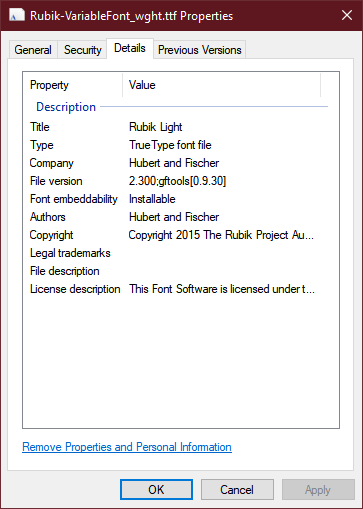 WildByDesign Posted 11 hours ago Posted 11 hours ago I only had to use this once before but you need _WinAPI_GetFontResourceInfo() to read font name directly from a font file properties. Example: #include <WinAPIGdi.au3> Example() Func Example() Local $sFile = "C:\Windows\Fonts\segoeui.ttf" ConsoleWrite(_WinAPI_GetFontResourceInfo($sFile, True) & @CRLF) ConsoleWrite(@CRLF) FontGetInfoFromFile($sFile, 0, "Copyright") FontGetInfoFromFile($sFile, 1, "Font Family name") FontGetInfoFromFile($sFile, 2, "Font SubFamily name") FontGetInfoFromFile($sFile, 3, "Unique font identifier") FontGetInfoFromFile($sFile, 4, "Font full name") FontGetInfoFromFile($sFile, 5, "Version string") FontGetInfoFromFile($sFile, 6, "Postscript name") FontGetInfoFromFile($sFile, 7, "Trademark") FontGetInfoFromFile($sFile, 8, "Manufacturer Name") FontGetInfoFromFile($sFile, 9, "Designer") FontGetInfoFromFile($sFile, 10, "Description") FontGetInfoFromFile($sFile, 11, "URL Vendor") FontGetInfoFromFile($sFile, 16, "Preferred Family (Windows only)") FontGetInfoFromFile($sFile, 17, "Preferred SubFamily (Windows only)") FontGetInfoFromFile($sFile, 18, "Compatible Full (Mac OS only)") FontGetInfoFromFile($sFile, 19, "Sample text") FontGetInfoFromFile($sFile, 20, "PostScript CID findfont name") FontGetInfoFromFile($sFile, 256, "Font-specific names") EndFunc ;==>Example Func FontGetInfoFromFile($sFile, $n, $sElement) Local $s = _WinAPI_GetFontResourceInfo($sFile, Default, $n) If Not @error And $s Then ConsoleWrite($sElement & " = " & $s & @CRLF) EndFunc ;==>FontGetInfoFromFile ioa747 and Parsix 1 1