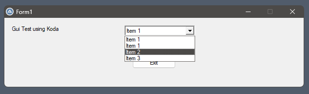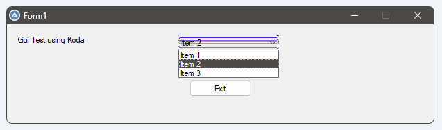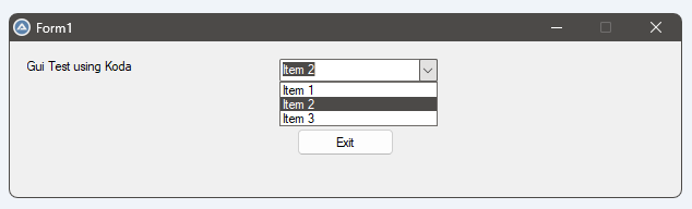cyberyeye Posted 3 hours ago Posted 3 hours ago Hi there ! I'm using Windows 24h2 (dark mode) using latest AutoIT stable version (v3.3.18.0) Here's a minimal GUI done quickly using Koda to demonstrate the rendering problem when using any combobox with style : $CBS_DROPDOWNLIST. The combo appears visually corrupted as shown on the two screen capture : is there another recommended style or know workaround to fix this and having combobox "read‑only" without these visual rendering problem ? #include <ButtonConstants.au3> #include <ComboConstants.au3> #include <GUIConstantsEx.au3> #include <StaticConstants.au3> #include <WindowsConstants.au3> #Region ### START Koda GUI section ### Form= $Gui = GUICreate("Form1", 615, 143, 192, 124) $Combo1 = GUICtrlCreateCombo("", 247, 16, 145, 25, $CBS_DROPDOWNLIST) GUICtrlSetData(-1, "Item 1|Item 2|Item 3") $Label1 = GUICtrlCreateLabel("Gui Test using Koda", 16, 16, 100, 17) $Button1 = GUICtrlCreateButton("Exit", 263, 80, 89, 25) GUISetState(@SW_SHOW) #EndRegion ### END Koda GUI section ### While 1 $nMsg = GUIGetMsg() Switch $nMsg Case $GUI_EVENT_CLOSE,$Button1 GUIDelete($Gui) Exit EndSwitch WEnd