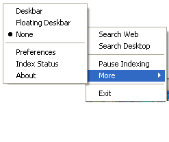 imoh Posted April 26, 2006 Author Posted April 26, 2006 To explain my issue a bit more, consider the attachment, when I right click on the "google desktop search icon" on systray, click up arrow twice to reach "More", click right arrow, there is a second level menu: 1) Through a script how do I find out there are 6 items in the submenu 2) The names of the menu items eg: Deskbar, Floating Deskbar etc 3) How do I know which has the selection beside it. In this case it shows "None" sample.bmp