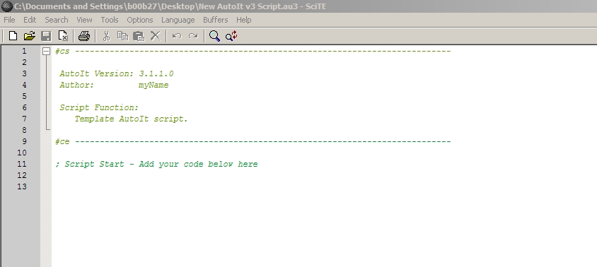 Developers Jos Posted October 21, 2006 Developers Posted October 21, 2006 when i open scite to create a new scriptsee screenshotAhh... now I understand..The Template wasn't updated in the 3.2.0.1 release, but thats not really a problem, its just a comment.If you want to change it, just open: C:\WINDOWS\ShellNew\Template.au3 and make the change there. SciTE4AutoIt3 Full installer Download page - Beta files Read before posting How to post scriptsource Forum etiquette Forum Rules Live for the present, Dream of the future, Learn from the past.