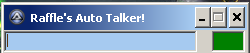 Raffle Posted June 24, 2007 Author Posted June 24, 2007 in the left hand side yo utype in what you want it to type in runescape. in the right say you put 10 it would say that message 10 times