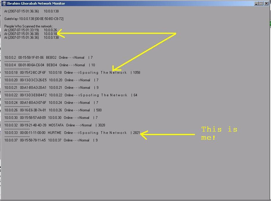 Ibrahim Posted July 13, 2007 Posted July 13, 2007 I'm doing a Network monitor program for network admins it depends on a program named winarp attacker for providding people who are doing arp scans "which depends on the speed rate of packets originating from the host" i need suggestion to increase the capabilities of the program and this is what i did so fare this interface keeps monitoring for arp scans . . . . . and this capture is from the real world of my network [font="Arial Black"]My Stuff[/font]UPnP Port Forwarding Final.GateWay InformationThe GateWay Watcher(detect speeofing)Rightclick Any file --->Hide/UnhideThe Tip WatcherA PanelShare WatcherThe Arp WatcherThe Online License Checker