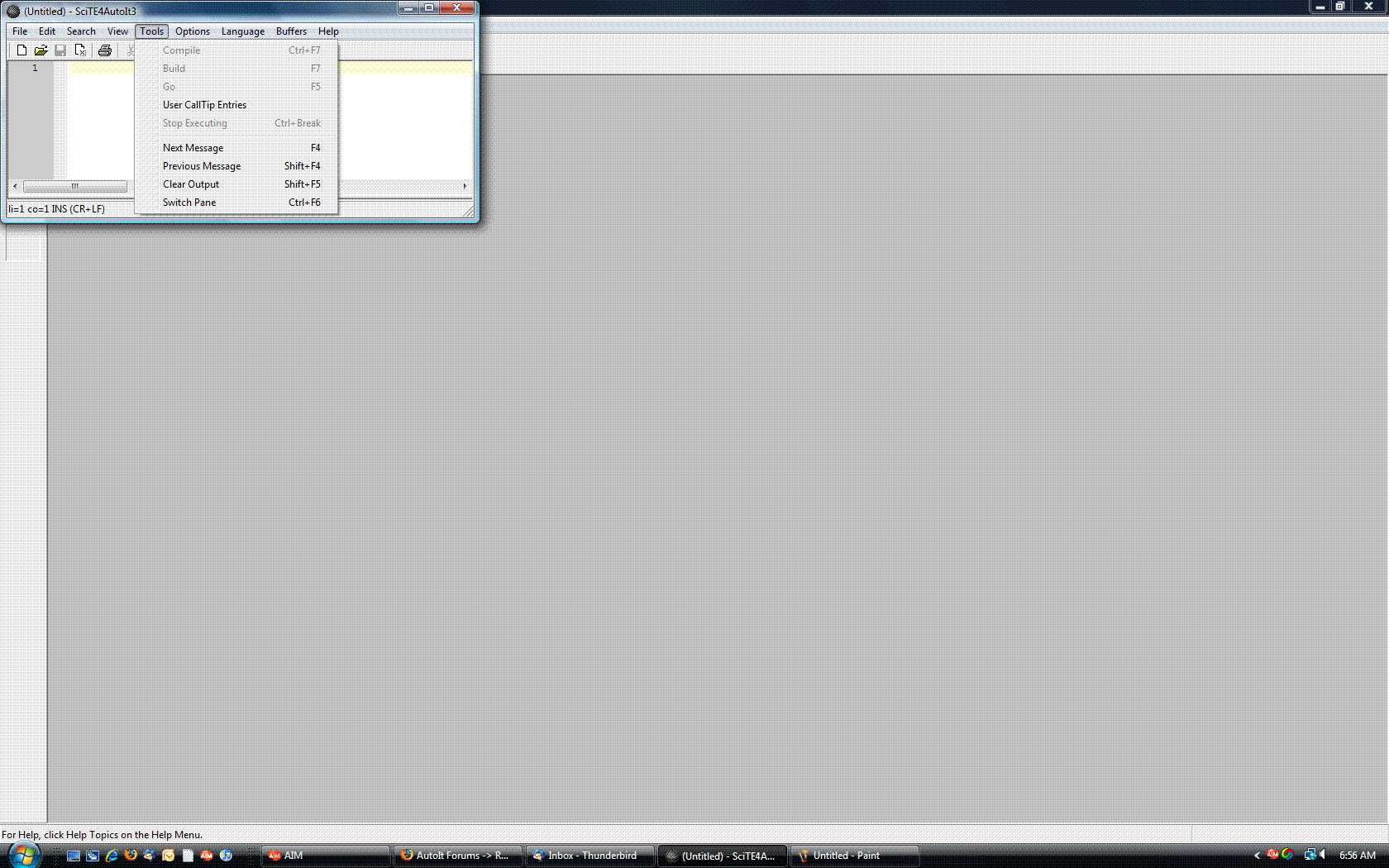 dpace32 Posted September 4, 2007 Author Posted September 4, 2007 Welcome to the forum.Please read this thread:http://www.autoitscript.com/forum/index.ph...showtopic=44575If you have not done so, you might want to install SciTE4AutoIt3 from here:http://www.autoitscript.com/autoit3/scite/downloads.php-MSP-Hmmm I followed these instructions and still no luck! I even tried the file -> save as then going to tools and its still not there...