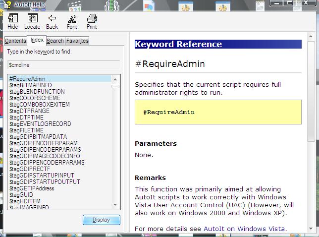 Moderators SmOke_N Posted September 14, 2008 Moderators Posted September 14, 2008 AutoIt v3.2.10.0 Start/All Programs/AutoIt v3/AutoIt Help File >_< And guess what i got this You are failing to follow instructions... I said "Click on the """"Search""""" Tab and type it in. You're in the "Index" tab. Common sense plays a role in the basics of understanding AutoIt... If you're lacking in that, do us all a favor, and step away from the computer.
