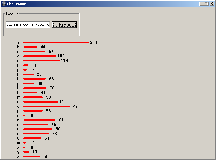 moczymorda Posted December 28, 2008 Posted December 28, 2008 (edited) This is sample of my script: expandcollapse popup#include <GUIConstants.au3> #include <array.au3> #Region ### START Koda GUI section ### Form= $Form1 = GUICreate("Char count", 703, 500, 193, 115) GUICtrlCreateGroup("", -99, -99, 1, 1) $Group2 = GUICtrlCreateGroup("Load file", 8, 15, 250, 81) $Path = GUICtrlCreateInput("", 16, 47, 145, 21) $Browse = GUICtrlCreateButton("Browse", 168, 47, 81, 22, 0) GUISetState(@SW_SHOW) #EndRegion ### END Koda GUI section ### While 1 $msg = GUIGetMsg() Switch $msg Case $GUI_EVENT_CLOSE Exit EndSwitch If $msg = $Browse Then $file = FileOpenDialog("open","C:\","(*.txt)",3,"",$Form1) If @error Then ContinueLoop GUICtrlSetData($Path, $file) $PathSv = GUICtrlRead($Path) Local $aAlph = StringSplit('abcdefghijklmnopqrstuvwxyz', '') Local $aArray[UBound($aAlph)], $sString = FileRead($PathSv) For $iCC = 1 To UBound($aAlph) - 1 StringReplace($sString, $aAlph[$iCC], '') $aArray[$iCC] = @extended GUICtrlCreateGraphic(23, 91+$iCC*15, $aArray[$iCC], 10) GUICtrlSetBkColor(-1, 0xffffff) GUICtrlSetColor(-1, 0) GUICtrlCreateLabel($aAlph[$iCC], 10, 89+$iCC*15, 10, 11) GUICtrlCreateLabel($aArray[$iCC], 23+$aArray[$iCC]+5, 89+$iCC*15, 36, 11) Next EndIf WEnd This script count A B C char from *.txt file and show as graph. I have questions: 2. How reset graph when i need load another file. Thx for any help. Edited December 28, 2008 by moczymorda
