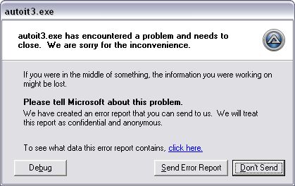 Kris123 Posted January 20, 2009 Posted January 20, 2009 Hi all, Here i would like to tell the problem of Auto IT when interacting with Win32 DLLs. The problem is : i am trying to call a DLL in my script, which internally interacts with 3 more DLLs. Those 3 DLLs need to be copied in windows/System32. When i try to call an API in the DLL (through the script), Auto IT is crashing and stopped execution. Please find the bellow attached BMP file. Please do the needful. Thanks in advance.
